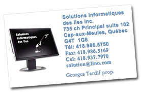 Accueil | Services Informatiques | Réseautique | Spécial de la semaine | | Vente | Réparation | Location | Réseau| Impression | Pour nous joindre | Solutions Informatiques des Iles ©2012